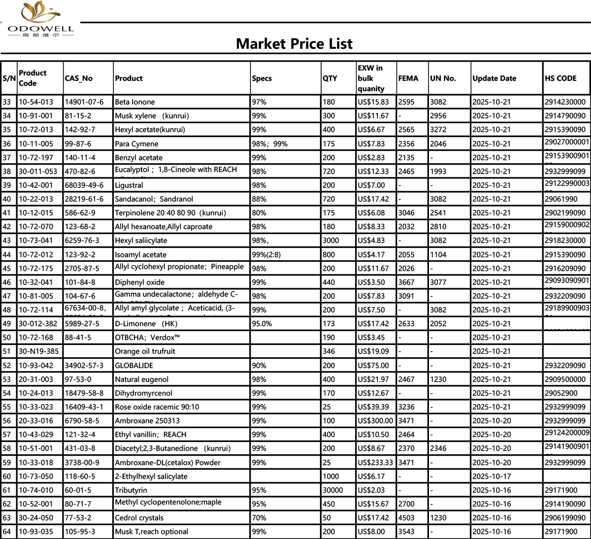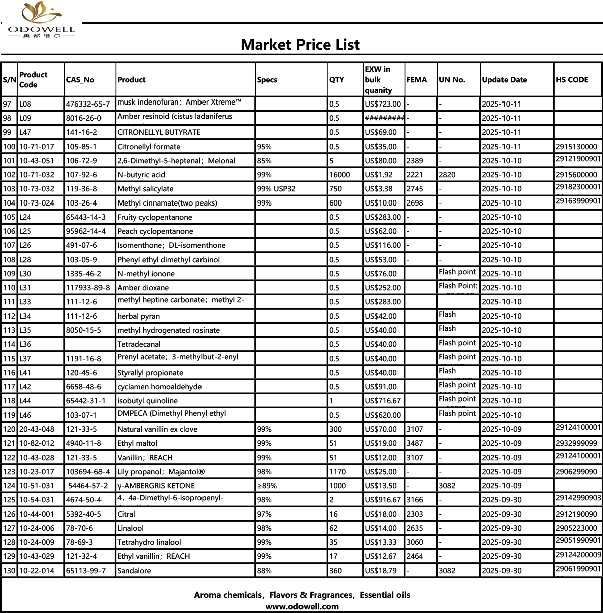 Listahan ng Presyo ng Presyo ng Odowell-Market-2025.9.30-2025.10.24
